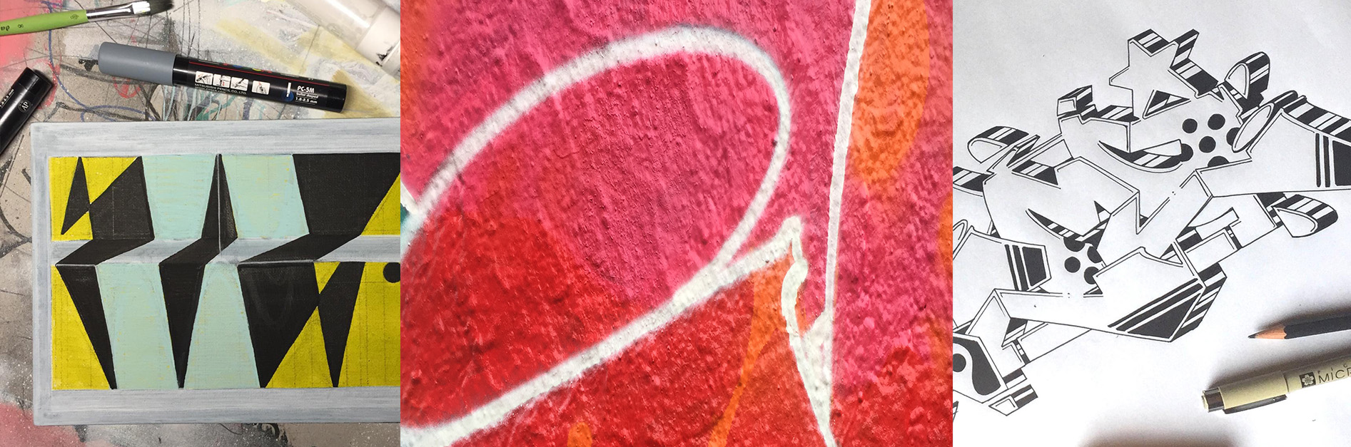 Wir starten mit Skizzen und lernen die Basics von Graffiti, kreativ und legal. Wir arbeiten auf Papier, Leinwand und – je nach Möglichkeit und Absprache – auf Übungsflächen mit Sprühdosen.